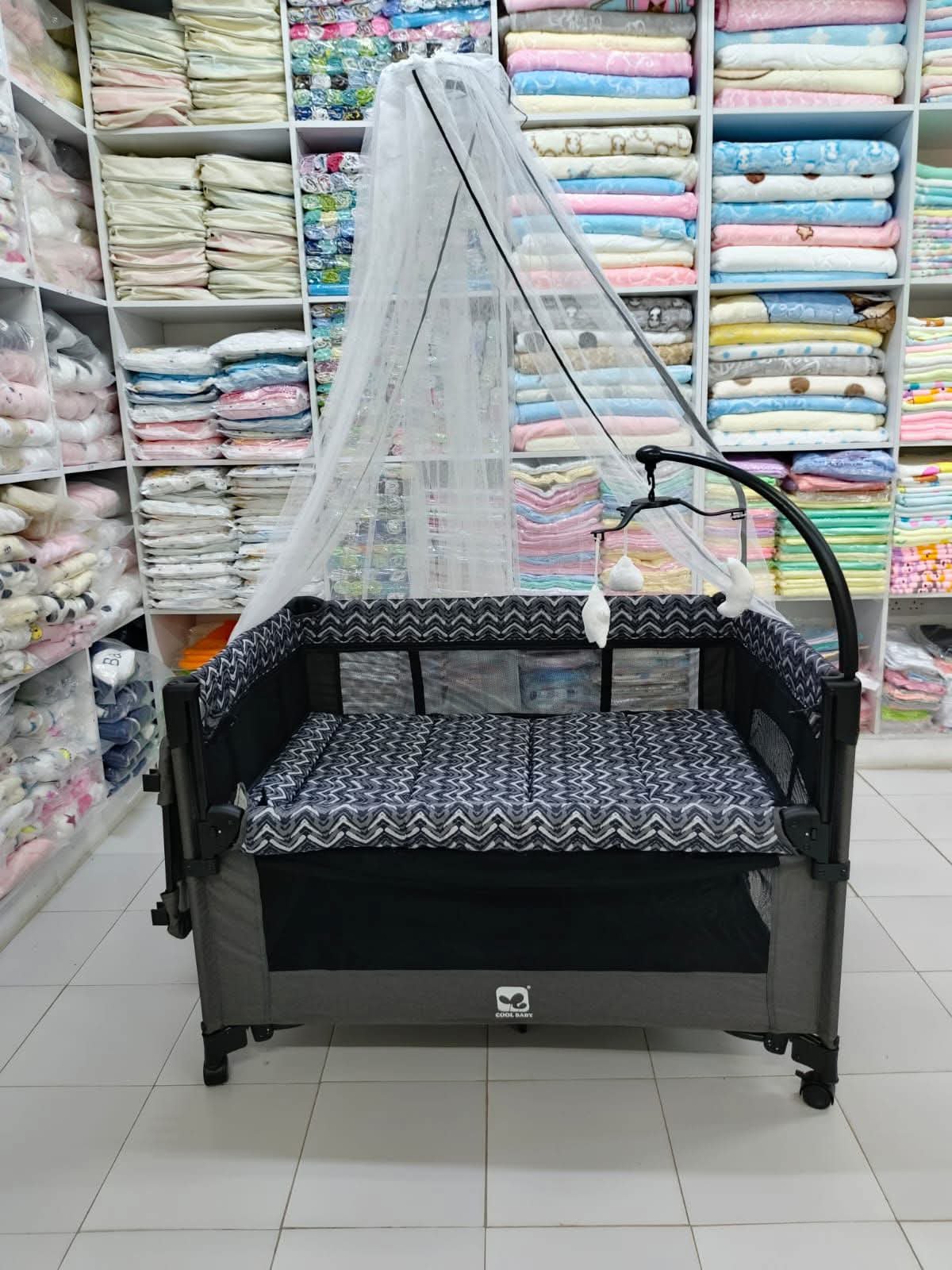 This baby cot playpen code 9161, has double layer design for babies in different ages. Its a bed that grows with your little one from newborn to 5 years. Its perfect for home use or travel since its foldable. It has wheels and can be moved from room to room with ease.