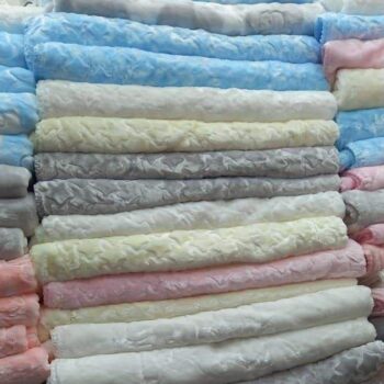 - Features: Blue and white checkered pattern, textured dotted surface (often called “minky” or “bubble fleece”).