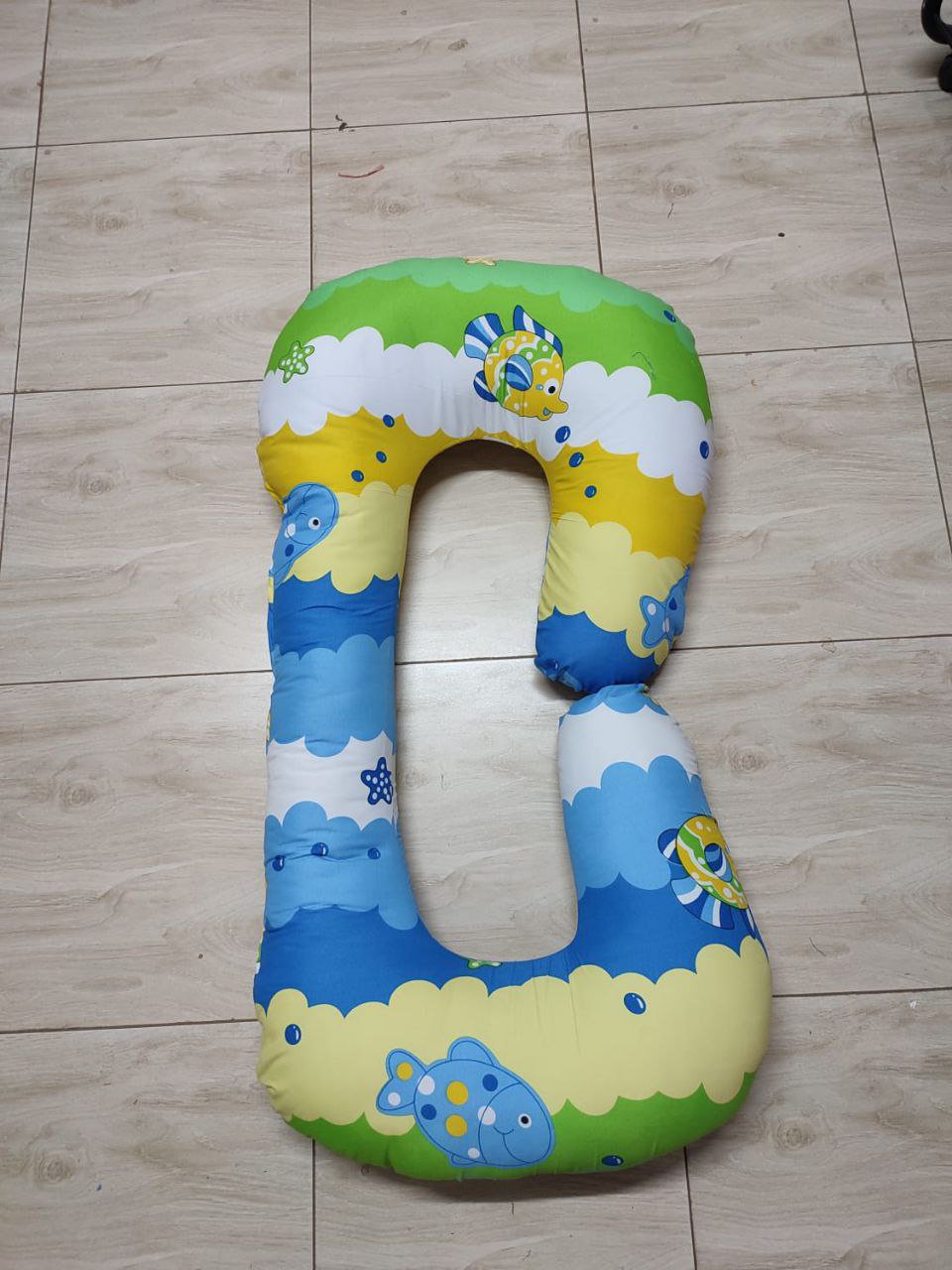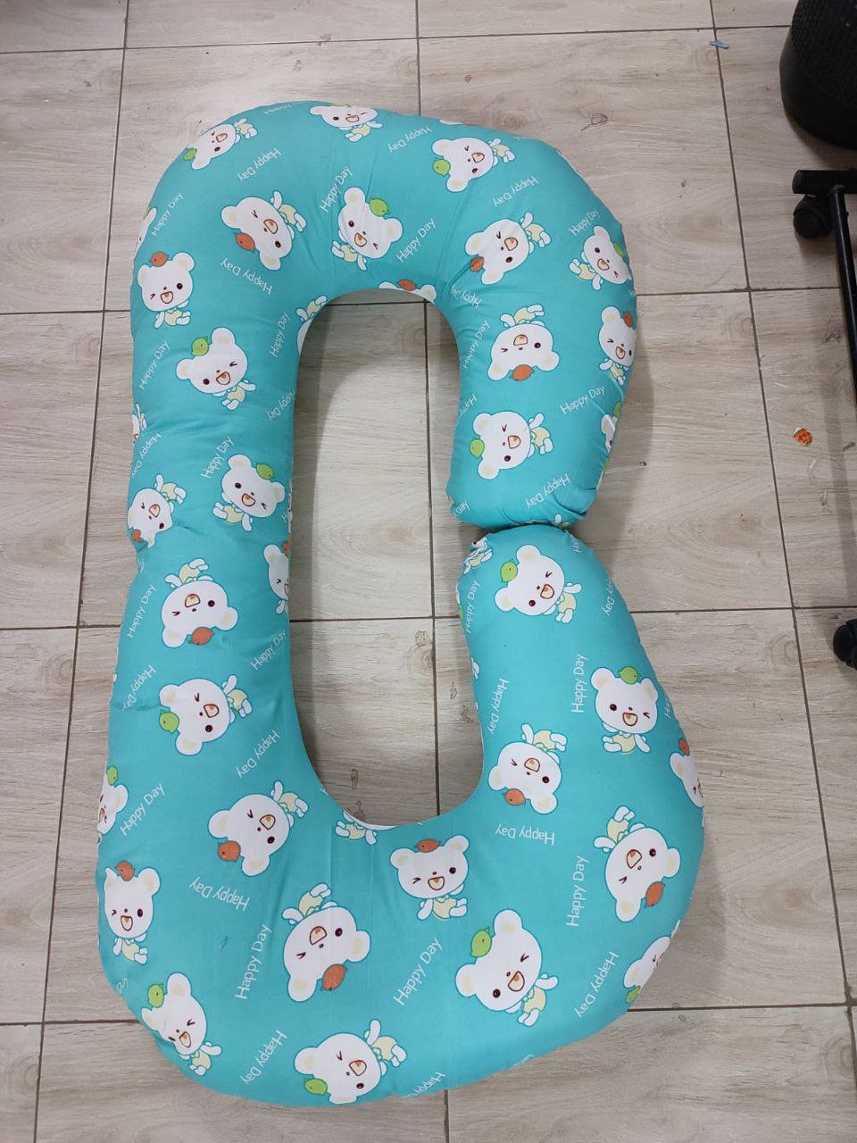 It’s a large, c-shaped pillow designed to provide support for pregnant women, particularly during sleep, by conforming to the body’s contours.