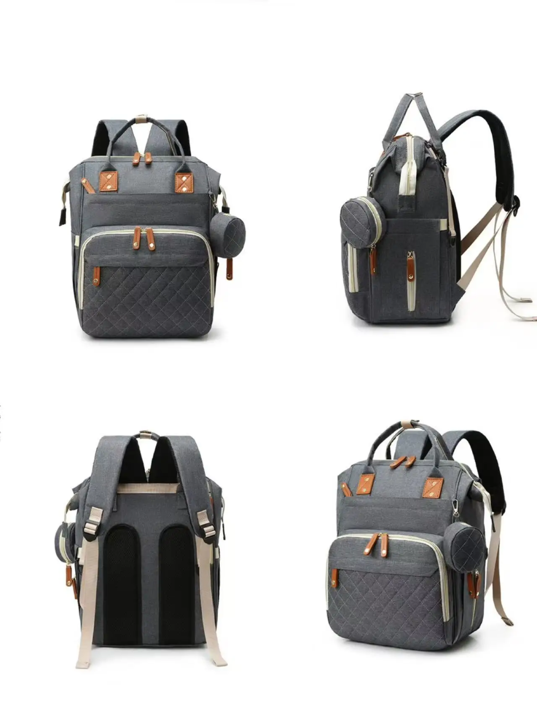 Designed to carry baby essentials, it often includes multiple compartments, some of which may be insulated for bottles, and can come with accessories like a changing pad or stroller straps.