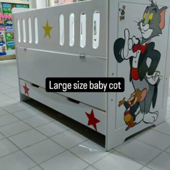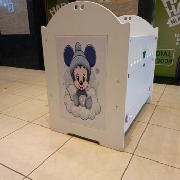 - Can be both attached to mum and dad’s bed for quieter nights during the first months, raising the foldable drawer side.