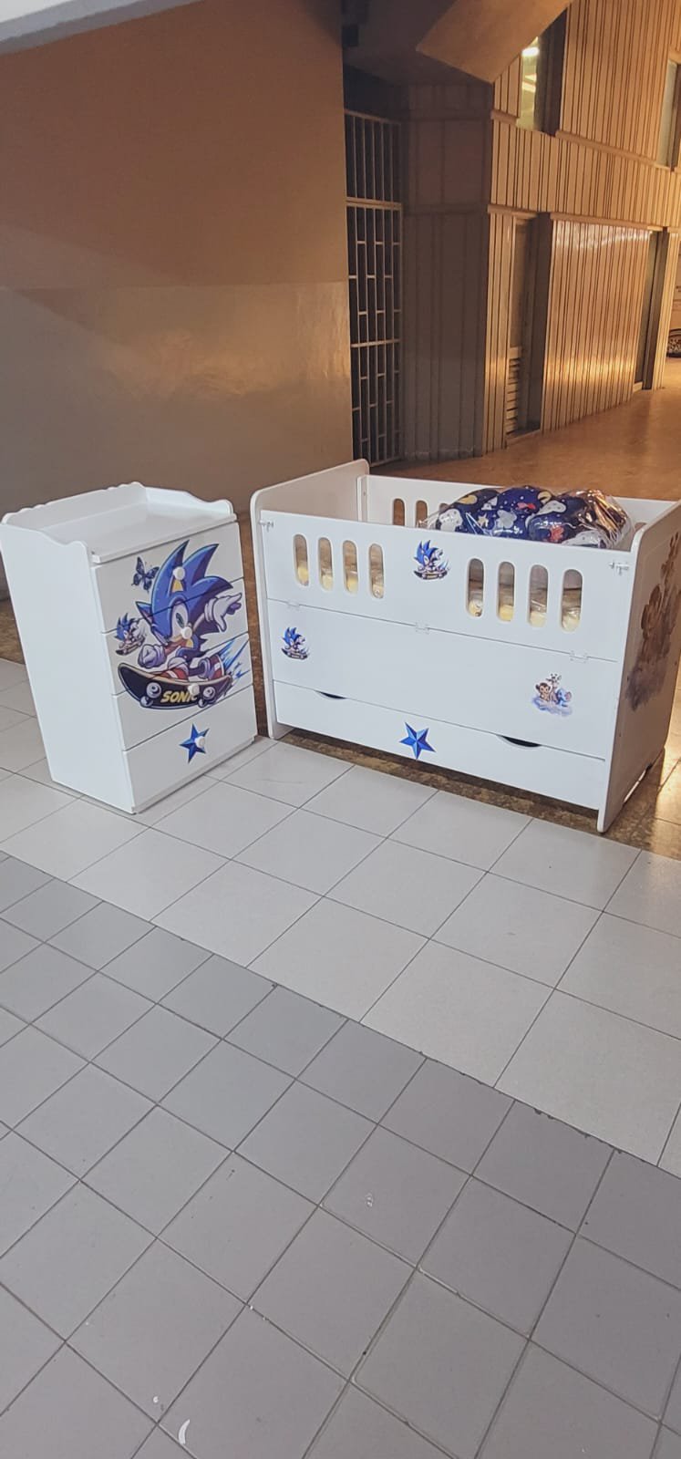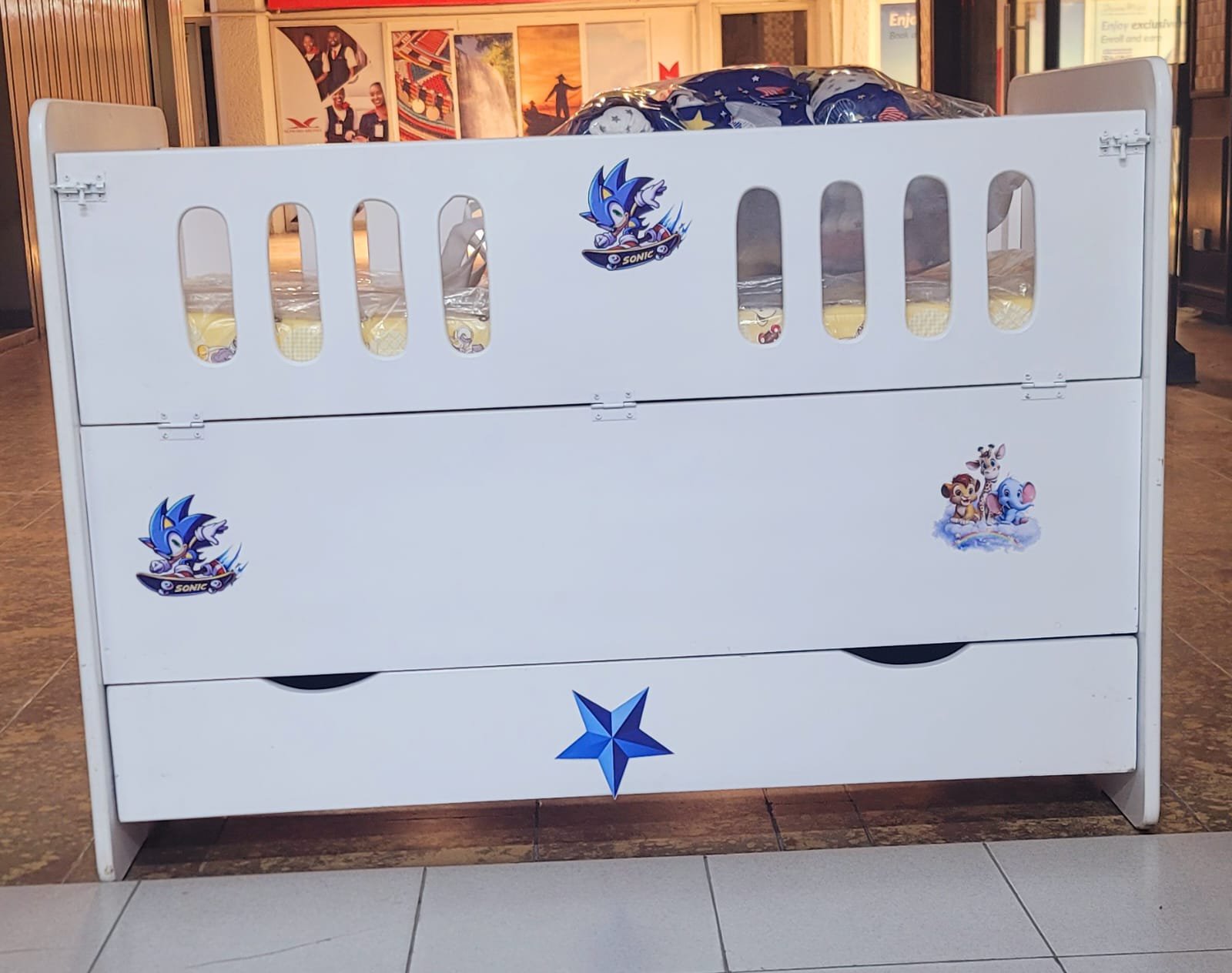 2.5 x 4 Feet MDF baby cot with 2 x 3 Chest of drawers set