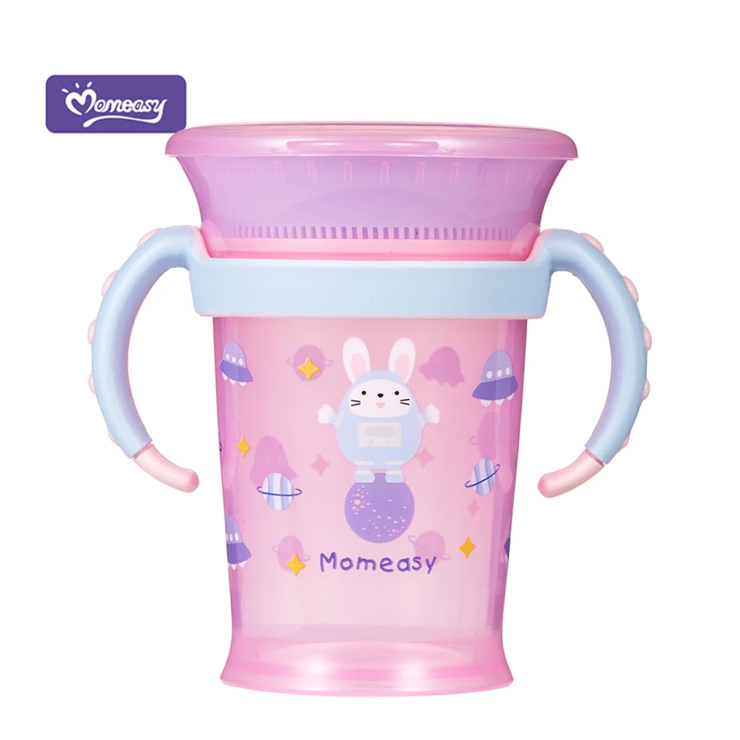 Momeasy 360° Natural Drinking Cup, also known as a baby training cup or non-spill magic cup.