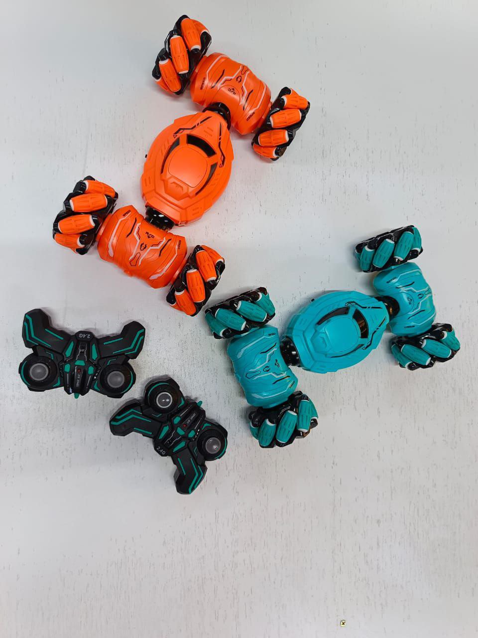 Remote control (RC) stunt cars, specifically designed for off-road use and performing various maneuvers.