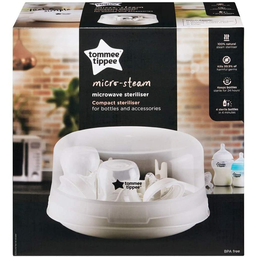 The Tommee Tippee Microwave Steriliser gives you a quick, easy and portable way to protect your baby’s tummy from harmful bacteria. The less time you spend cleaning and preparing your bottles, the better. With this microwave steriliser you can sterilise up to 4 baby bottles in just 4 minutes ensuring you have feed-ready bottles on hand for your baby, any time. The steriliser has a 4-minute sterilising phase so when the cycle is finished, either remove the bottles and accessories or leave the lid closed and the contents will stay sterile for up to 24 hours
